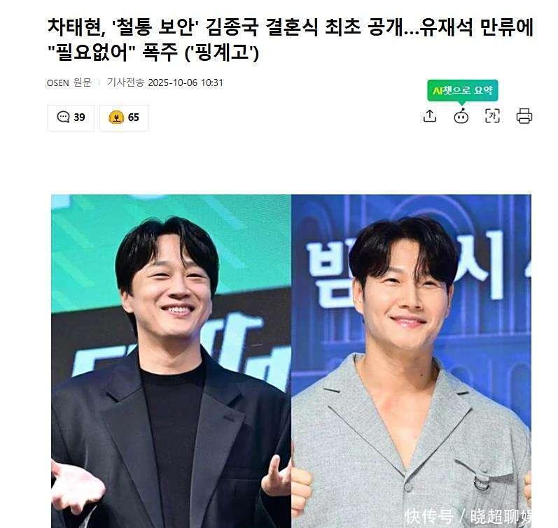 挚友的婚礼能有多“双标”?车太贤最近就用实际行动演绎了一场“兄弟情深的翻车现场”。据韩国媒体10月6日报道,在最新一期节目中,他不仅自曝在金钟国严密安保的婚礼上偷拍,还对着刘在石的劝阻甩出一句“没必要操心”,笑翻全场的同时,也让人感慨:这哥是真敢说!